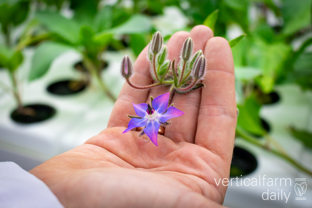 Een zeldzame eetbare bloem gekweekt in de vertical farm