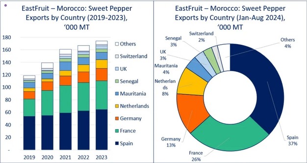 De Europese Unie blijft een belangrijke markt voor Marokkaanse paprika's, met Spanje, Frankrijk, Duitsland en Nederland als belangrijkste bestemmingen. Deze landen gebruiken de geïmporteerde paprika's voor zowel binnenlandse consumptie als wederuitvoer naar andere Europese landen.