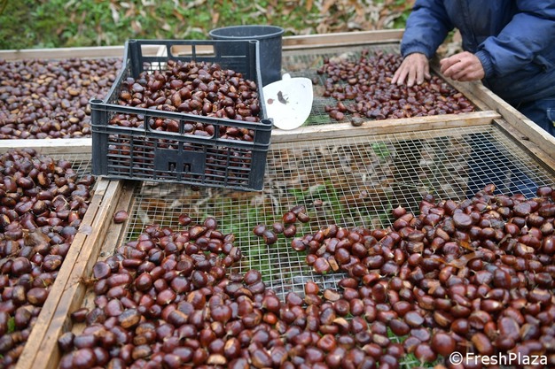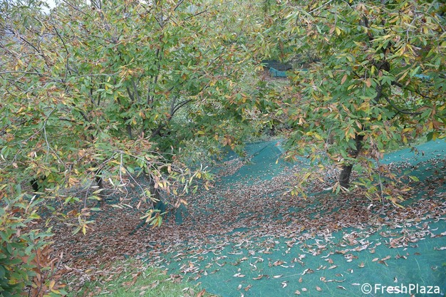 "Netten zijn een uitstekende oplossing om de oogst te versnellen en de kwaliteit te behouden", stelt de teler. "Want kastanjes glijden, als ze eenmaal gevallen zijn, van de helling af en stapelen zich aan één kant op. Het is een techniek die ik nu al 25 jaar toepas en die ik in alle opzichten nuttig vind. Het feit dat de kastanjes de grond niet raken, betekent bijvoorbeeld dat ze sneller drogen en dus beter houdbaar zijn."