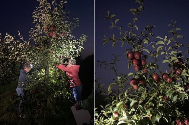 Ook dit jaar oogstte Bio Obsthof Münch zijn populaire vollemaanappelen. "De omstandigheden voor de oogst op 18 september konden nauwelijks beter zijn: ideaal oogstweer en een helder zicht op de stralende volle maan gaven het evenement een speciale sfeer. Nieuw is de introductie van 'vollemaansperen' (de Novembra variëteit), die we nu voor het eerst samen met de maanappelen hebben geoogst", legt plantmanager Marco Bartels uit. "We hebben 30 procent minder maanappelen geoogst dan vorig jaar. Daardoor zullen de maanappelen in januari waarschijnlijk uitverkocht zijn."