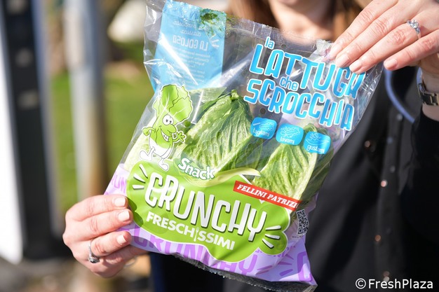 Crunchy is een innovatief slamerk van Fellini Patrizio, geteeld op verschillende locaties in Italië, zodat het jaarrond beschikbaar is. "Crunchy combineert knapperigheid met een zoete smaak", legt Pignato uit. "De verpakking is aantrekkelijk en bevat minimaal 300 gram sla, twee stuks per zak." Elke verpakking bevat ook recepten en een QR-code voor meer kookinspiratie. "Het is een kruising tussen Romaine en ijsbergsla. De lepelvormige bladeren zijn perfect voor fingerfood of een klassieke salade. Ze zijn zoet van smaak en zelfs zonder dressing lekker."