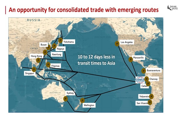 Het grootste voordeel van de haven is de sterk verkorte transittijd naar Azië. "De directe route via Chancay bespaart 10 dagen, waardoor de reistijd van 36 naar 26 dagen wordt teruggebracht", benadrukt Guinand. Dit is vooral gunstig voor bederfelijke producten zoals verse groenten en fruit, die in betere staat en tegen concurrerende kosten hun bestemming zullen bereiken.