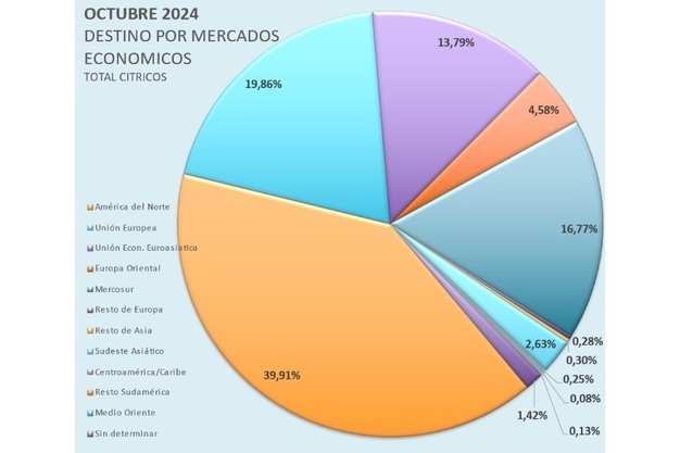Het citrusseizoen van Argentinië in 2024 eindigde met de laagste exportcijfers van het afgelopen decennium, voornamelijk door een aanzienlijke daling in de zendingen van citroenen. José Carbonell, voorzitter van de Argentijnse Citrus Federatie (FederCitrus), reflecteerde op de citrusexport van het land en de veranderingen in de export van verwerkte producten. "De export van vers fruit kwam uit op 220.000 ton, het laagste cijfer van de afgelopen tien jaar. De volumes sinaasappelen en mandarijnen herstelden zich bijna volledig ten opzichte van het slechte seizoen in 2023, maar de zendingen van citroenen daalden sterk, vooral naar de Europese Unie. Dit werd gedeeltelijk gecompenseerd door de export naar de VS, die meer dan 90.000 ton bereikte."