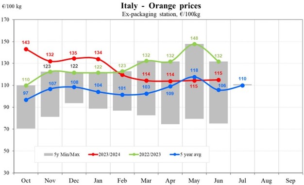 De bijdragen van Spanje en Italië aan de gemiddelde prijstrends in de EU blijven kritiek, gezien hun belangrijke rol als grote sinaasappeltelers. De bredere prijsdalingen in de hele EU benadrukken uitdagingen zoals de toegenomen concurrentie van import en de klimatologische gevolgen voor de oogsten.