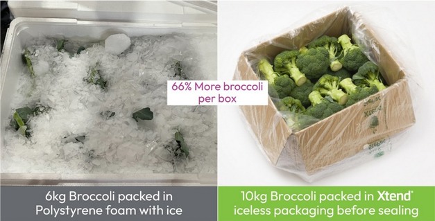 "Met ijs kan er slechts 6 kg broccoli in elke doos; zonder ijs kunnen we ongeveer 10 kg verpakken. Bovendien kan één Xtend-zak 10 kg broccoli bevatten, waardoor er zuiniger met grondstoffen wordt omgesprongen en er geen extra handling nodig is. De mogelijkheid om ijsvrije verse broccoli over het hele continent te vervoeren in vrachtwagens met een beperkt gewicht heeft geleid tot een netto kostenbesparing van meer dan 30%."