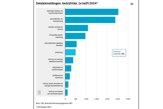 Datalekmeldingen, bedrijfstak, eerste helft 2024