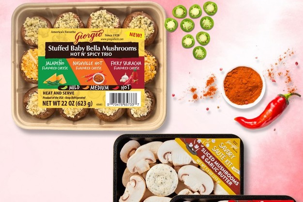 Dit jaar introduceert Giorgio Mushrooms nieuwe producten op de New York Produce Show. De Spicy Trio gevulde champignons, verkrijgbaar in de smaken Jalapeno, Nashville Hot en Fiery Sriracha, voegen een pittige smaak toe aan elk gerecht.