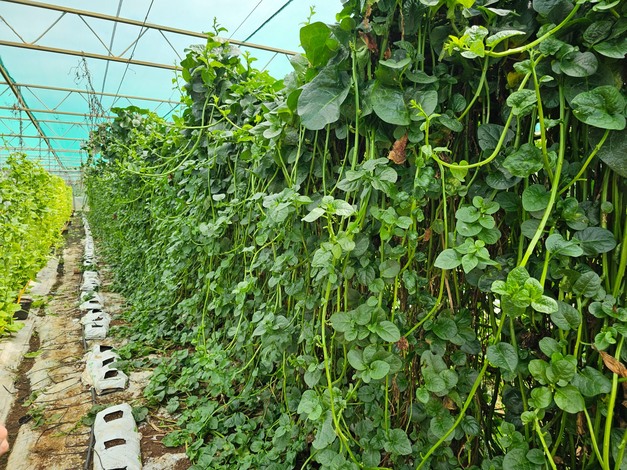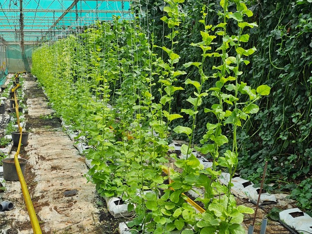 "Ik vind dat we toch een mooie mix aan producten hebben staan in de kas. Realiseer je dat hier niet alles groeit. Het is altijd warm en tussen de dag en de nacht is het temperatuurverschil nauwelijks 3 graden. In die zin komt het er ook op aan de juiste rassen te selecteren. Zo hebben we meerdere komkommerrassen geprobeerd en getest op onder meer hittebestendigheid en gemiddelde opbrengst om tot de uiteindelijke keuze te komen."