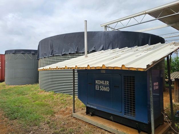 Al het regenwater wordt opgevangen. Een aggregaat wordt vnl in de regenperiode gebruikt omdat er dan te weinig licht is om stroom op te wekken