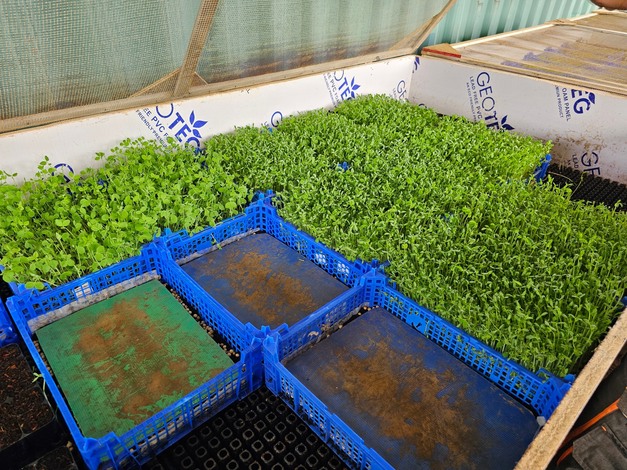 Er werd begonnen met baby leaf, cressen en spinazie – een bijzondere soort, namelijk Malabar spinazie, waarvan de plant omhoog kruipt en twee meter kan worden –, maar ondertussen vind je in de kas van wat Bon Tera Bonaire werd gedoopt ook watermeloenen, (snack)komkommers, de typische Surinaamse groente kousenband, cherrytomaten – dit product alleen in de koelere maanden, net na de regentijd – en kruiden zoals basilicum en munt. Het cressenaanbod bestaat uit rode en groene radijs, zonnebloem en erwt.