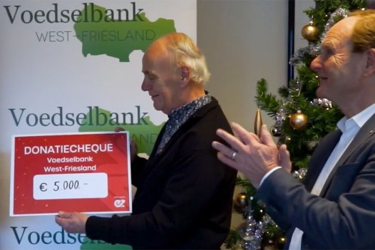 Ook dit jaar doneerde een groot aantal collega's van Enza Zaden in Enkhuizen hun kerstpakket (of een deel ervan) aan Voedselbank Westfriesland. Dit leverde een bedrag op van €2300, dat door Enza Zaden zelf is verdubbeld én naar boven afgerond tot €5000. Ze gingen bij de Voedselbank langs om de cheque te overhandigen.