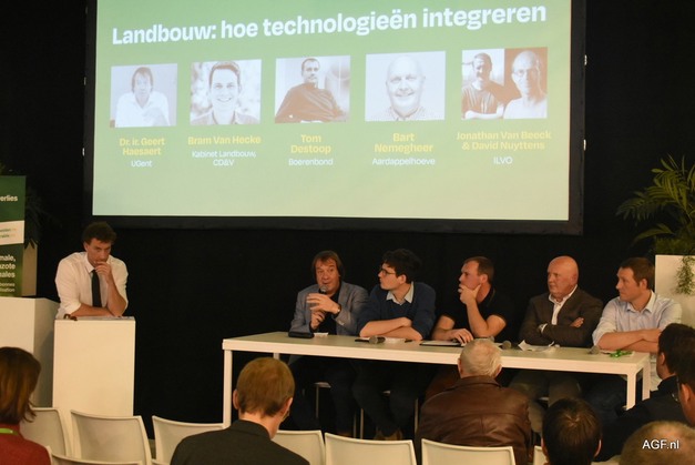 Tholen - Op de tweede dag van de Interpom vond een debat plaats over de integratie van nieuwe technologieën in de aardappelteelt. Vijf specialisten gaven hun visie over de integratie van nieuwe technologieën in de aardappelteelt. Het debat werd gemodereerd door Christophe Vermeulen (Belgapom) en de deelnemers waren Geert Haesaert (UGent), Bram Van Hecke (kabinet minister Brouns), Tom Destoop (Boerenbond), Bart Nemegheer (De Aardappelhoeve) en Jonathan Van Beek (ILVO).