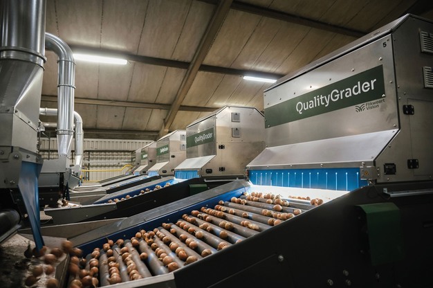 De uien worden sinds 2023 gesorteerd door optische sorteerders. De ontwikkelingen rondom optisch sorteren worden al jaren door Jaap Nieuwenhuijse gevolgd. Na een proef van een half jaar met één machine, staan er sinds december vorig jaar vijf optische sorteerders voor gele uien en één voor rode uien en sjalotten op het bedrijf. "We waren vrij snel overtuigd van deze machines", geeft Joël aan. "Ze optimaliseren het sorteerproces, waardoor we ook de productie kunnen verhogen. We kunnen veel constanter draaien."