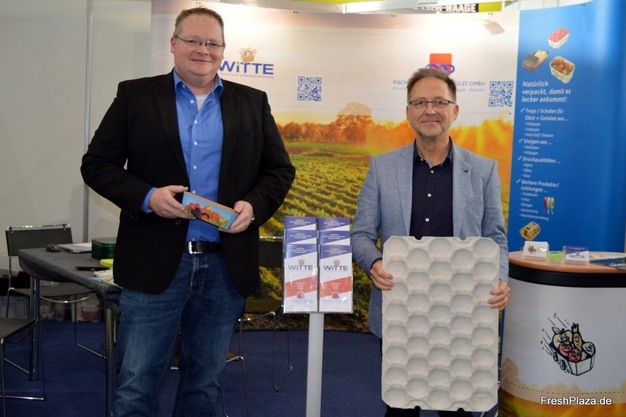 Christoph Witte en Michael Fischermann van partnerbedrijf Fischermann & Van Hulst exposeerden voor het eerst op expoSE in Karlsruhe. Ze genoten veel belangstelling en kregen veel vragen over duurzame verpakkingsalternatieven, zoals de nieuwe gemalen vezeltrays.