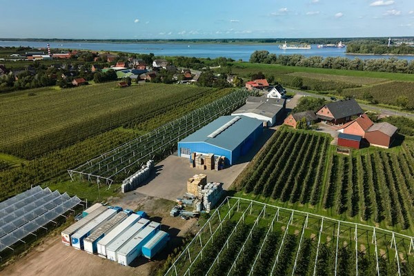 Luchtfoto van het hoofdkantoor in Jork-Borstel, in het hart van het Altes Land.
