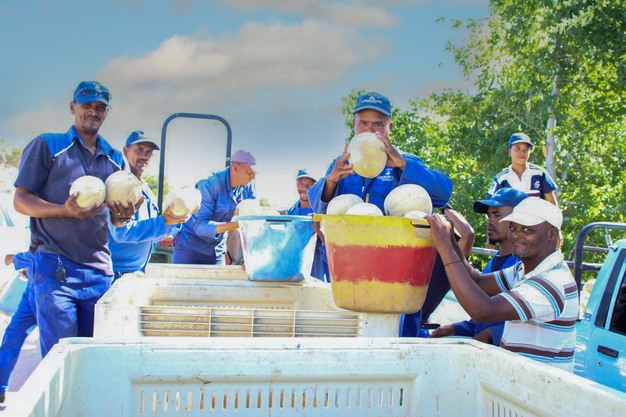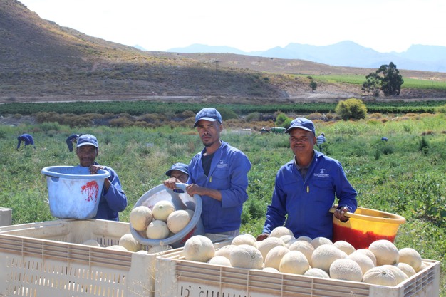 De watermeloenenoogst is, als we het teeltbedrijf begin januari bezoeken, al afgerond. "Meloenen moet je in Zuid-Afrika ook in de zomer verkopen. Daarom is de oogstperiode van begin december tot de eerste week van januari ook perfect, vanwege de feestdagen en de vele toeristen in de kustplaatsen. Zuid-Afrikanen willen de watermeloenen alleen rood en zoet", vertelt de teler die als record dit jaar een exemplaar van 28 kilo wist te oogsten. "Voordeel van de meloenen is dat we door de lokale afzet geen kosten hebben aan vervoer of verpakking. De peren worden daarentegen in Zuid-Afrika niet zoveel gegeten en gaan de hele wereld over. Onze peren worden via True Cape onder meer afgezet in de Verenigde Staten, China, Japan en Europa."