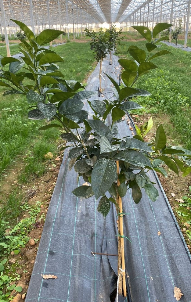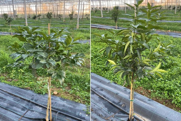 De jonge planten werden aangeschaft bij een kwekerij in de Pyrénées-Orientales, met ondersteuning van de Kamer van Landbouw. Dankzij een trainingsdag kreeg Anthony waardevolle inzichten in de teelt. Op de foto links staat een grapefruitboom, rechts een clementineboom.