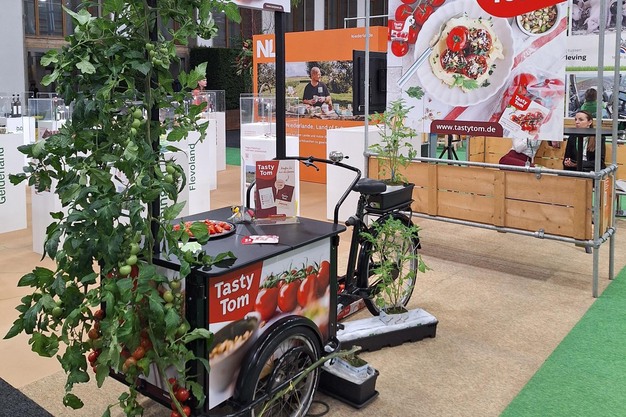 Ine van Kleef, marketingmanager van Tasty Tom, legt uit waarom het merk aanwezig is op de Grüne Woche: "We willen bezoekers graag het verhaal achter onze Tasty Tom-tomaten laten beleven. Met een opvallende fietskar en echte tomatenplanten in onze stand brengen we de passie en zorg die in onze tomaten zit, tot leven. Het Holland Paviljoen, georganiseerd door Nederlandse exportorganisaties, biedt ons een unieke kans om de bekendheid van Tasty Tom verder te vergroten en nieuwe consumenten kennis te laten maken met onze onderscheidende, volle smaak."