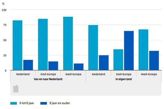 In eigen land rijden vervoerders uit Europese landen juist vaak met oudere vrachtwagens. In 2023 werd in Oost-Europa bij 65,1 procent van de ritten in eigen land gebruikgemaakt van een vrachtauto van acht jaar of ouder. In Nederland reed 25,3 procent met een vrachtwagen van acht jaar of ouder.