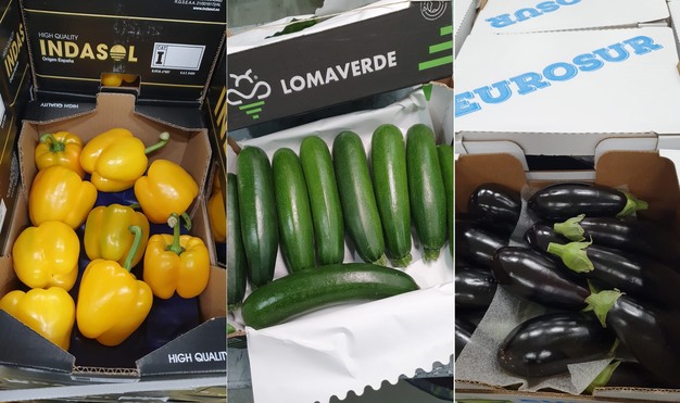 "Ook de komkommers kleuren allemaal slecht vanwege de kou. Niet dramatisch, maar het is ook geen 100%. Daarbij zijn er wat Hollandse belichte komkommers op de markt. Die kosten ook wel geld, maar daardoor verkoop je minder Spaanse. Prijzen van de Spaanse komkommers liggen voor de 16'ers rond de 7,50 en de 14'ers rond de 8 - 8,50 euro", vervolgt Pieter. "Ook aubergines hebben last van de kou. Stop ze alsjeblieft in een folie, want dan kun je ze nog wat langer bewaren, maar er worden toch her en der nog wat naakte aubergines afgestuurd en daar moet je ook weer een baasje voor zien te vinden. Aubergineprijzen liggen tussen de 13-14 euro", vervolgt Pieter.