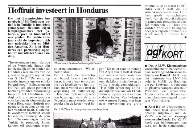 Hoewel Geert (pa) altijd zei: 'Léér een vak, ga vooral NIET in de groente en fruit', was het op 1 februari 1995 tóch zover, Arjan begint in het familiebedrijf, Hoffruit B.V.