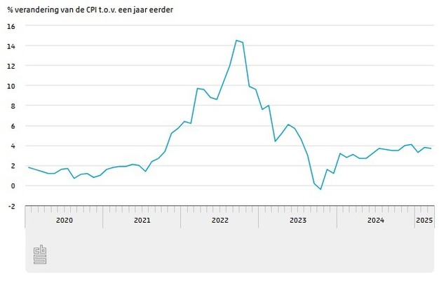 Bij de snelle raming was de inflatie in maart 3,7 procent, meldt het CBS. Deze raming is berekend op basis van nog onvolledige brongegevens. In februari was de inflatie 3,8 procent.