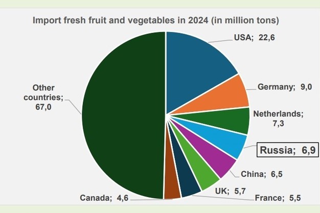 Rusland is een belangrijke importeur van verse groenten en fruit. De laatste jaren wordt er (naar schatting) zo'n 7 miljoen ton van ingevoerd. Na de Verenigde Staten (22,5 miljoen ton), Duitsland (9,0) en Nederland (7,3) is Rusland wereldwijd gezien de vierde voor China (6,5) en het Verenigd Koninkrijk (5,7).