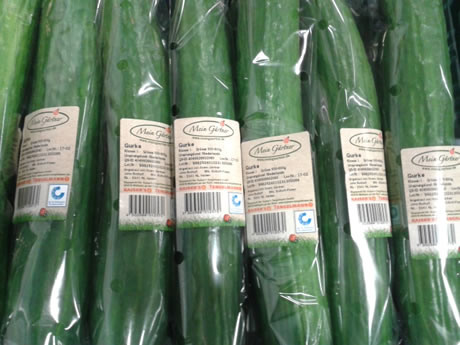 "We hebben een drietal telers, namelijk John Rothoff, Ed Classen en Chantal & Gerben Alaerds aan dit project gekoppeld en zij staan op de website van Mein Gärtner vermeld en op het etiket van de verpakking staat ook de producent vermeld, zodat klanten kunnen zien waar de komkommer vandaan komt", vervolgt Huub. "Deze komkommers worden aangeboden in de zwaardere 50/60 sortering. Wij hebben de telers en de rassen die zij telen daar dan ook op geselecteerd.""We zijn nu vier weken aan de gang en de samenwerking verloopt erg positief. Het is nu nog wat vroeg om conclusies te trekken, maar uiteindelijk is het doel natuurlijk dat dit leidt tot betere verkoopcijfers van de komkommers", besluit Huub. "Door de komkommers jaarrond aan te bieden - vorig jaar nog met Duitse komkommers - laat Tengelmann wel het vertrouwen zien die het heeft in het product."