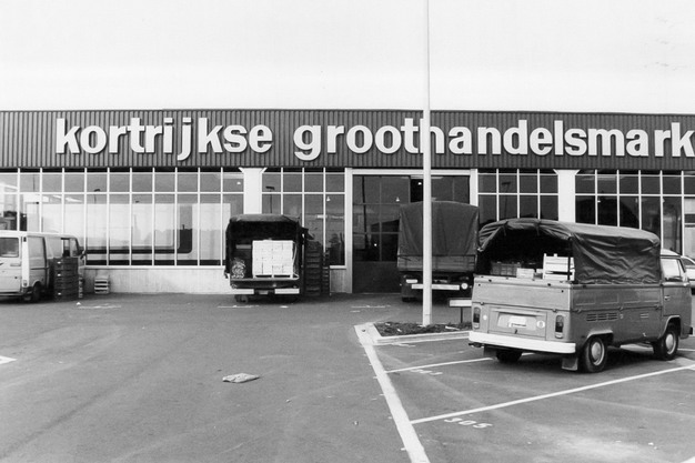 Het is maandagmiddag als we het terrein van de Kortrijkse Groothandelsmarkt oprijden. Het is er een drukte van belang. De parking is overvol zodat je je wagen ergens clandestien wegzet. En dat voor een nieuwe markt die nauwelijks een jaar oud is... Er komt nog parking bij, want bij de opzet is daar rekening mee gehouden", zo vertelt iemand me.
