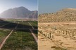 Een deel van de walnotenboomgaard van Walnuts.ge in Udabno, Georgië, met waterreservoir