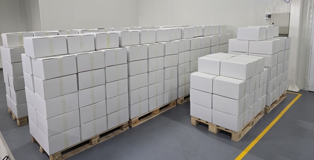 Ongeveer 20% van de hazelnoten wordt geroosterd en verpakt in dozen van 20 kilo