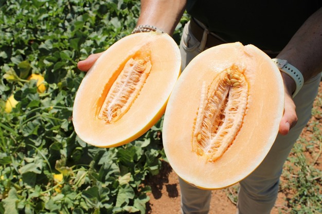 José Guirado van Seminis Bayer met een Galves Galia-meloen in de hand
