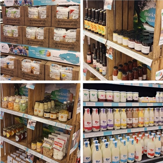Een recente ontwikkeling is de samenwerking met regionale supermarkten. In supermarkten in Gravendeel en Goudswaard staan inmiddels 'Hoeksche Waaren'-rekken, gevuld met lokale producten. "Zo kunnen we ook die 80 tot 90 procent van de mensen bereiken die nooit online boodschappen doen," vertelt Pieter. "We zijn gestart met droogwaren, maar werken eraan om ook verse producten goed gepresenteerd te krijgen. Denk aan bloemkolen of tomaten met een duidelijke herkomstvermelding." De uitdaging daarbij zit hem vooral in presentatie, om onderscheid te maken tussen standaard bulk en lokaal product met verhaal. "We zorgen dat het verhaal van de teler zichtbaar is: waar komt de bloemkool vandaan, wie teelt 'm?"