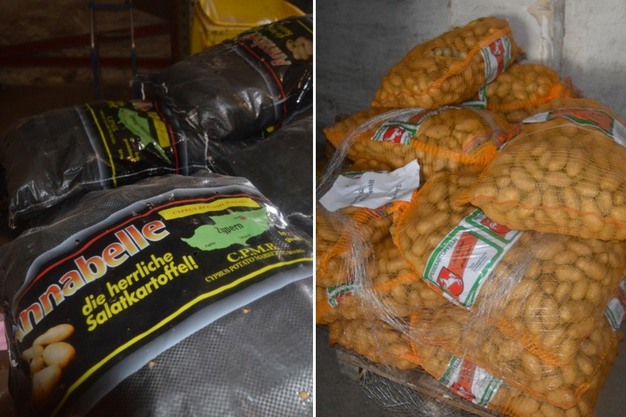 Cypriotische vroege aardappelen van het ras Annabelle (l) en consumptieaardappelen uit Nedersaksen