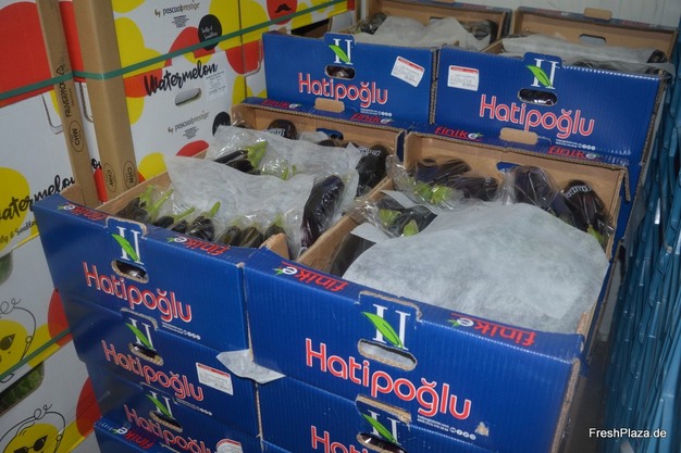 Turkse vruchtgroenten en Italiaans steenfruit in het magazijn van EK-Service