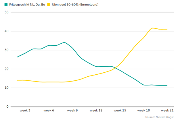 De impact van de Lbv kan voor akkerbouwers positief uitpakken. Door bedrijfsbeëindiging van veehouders komt landbouwgrond vrij die, mits geschikt, mogelijk wordt ingezet voor de akkerbouw. ABN AMRO verwacht daarom een toename in het akkerbouw-areaal vanaf 2026. De droogte heeft daarnaast tot op heden weinig negatieve invloed op groei van gewassen, met uitzondering van percelen die niet kunnen worden beregend. Prijzen fluctueren sterk in de eerste helft van 2025. Zo zijn de prijzen van consumptieaardappelen sinds februari flink gedaald, terwijl de prijzen van gele uien juist stegen in diezelfde periode. Op korte termijn verwacht ABN AMRO dat het terugdringen van het gebruik van chemische gewasbeschermingsmiddelen druk legt op opbrengsten. Precisielandbouw, groene gewasbeschermingsmiddelen en geïntegreerde bestrijding (Integrated Crop Management) kunnen deze druk verlagen, mits technieken snel genoeg beschikbaar zijn voor ondernemers.