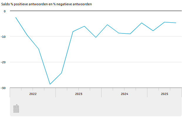 Het ondernemersvertrouwen van de detailhandel is iets gedaald en kwam aan het begin van het derde kwartaal van 2025 uit op -4,7 procent. Ondernemers zijn iets minder negatief over de ontwikkeling van het economisch klimaat (-4,5) dan over de verwachting voor het economisch klimaat (-5,0). Een negatief sentiment is al te zien sinds het eerste kwartaal van 2022. Gedurende heel 2022 daalde het vertrouwen sterk tot -28,7 in het laatste kwartaal van dat jaar. Sinds het eerste kwartaal van 2023 verbeterde het vertrouwen voorzichtig, maar dit heeft nog geen positief niveau bereikt.