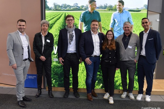 Het Dreesen Kräuter-team bij de Gemüsering-stand op Fruit Logistica dit jaar. Links Artur Lammert en tweede van rechts Robert Dreesen.