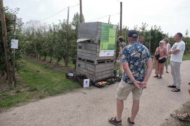 Het nevelsysteem van TSG-Klimaattechniek (onderdeel van TS Group Holland uit Buren) helpt om schade door te fel zonlicht te voorkomen en verbruikt ook nog eens minder water dan vergelijkbare systemen. Het gaat om een proef op het Fruit Research Centre in Randwijk, die mede wordt gefaciliteerd door Fruitpact. Het nevelsysteem trok onlangs veel belangstelling tijdens de open dag in augustus.