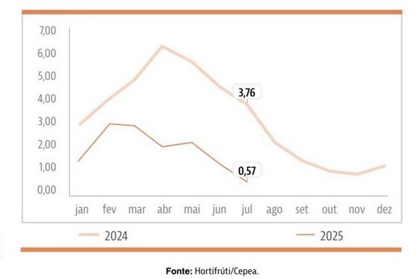 In juli begon de grote oogst in São Paulo en Minas Gerais. De snelle instroom van uien uit deze regio's leidde al snel tot een verzadiging van de markt, waardoor sommige grotere telers hun velden niet volledig konden oogsten door de afgenomen vraag.