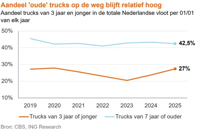 De truckmarkt gaat door een fase van correctie, maar onderliggend zijn de signalen volgens de analysten van ING positief. Vervangingsdruk, strengere milieuwetgeving en de vrachtwagenheffing versnellen de overstap naar elektrische trucks. Hoewel de sector de hogere kosten grotendeels zal doorberekenen, blijft de impact voor consumenten beperkt. Voor transportbedrijven betekent het vooral: nu strategisch investeren om in 2026-2030 concurrerend te blijven.