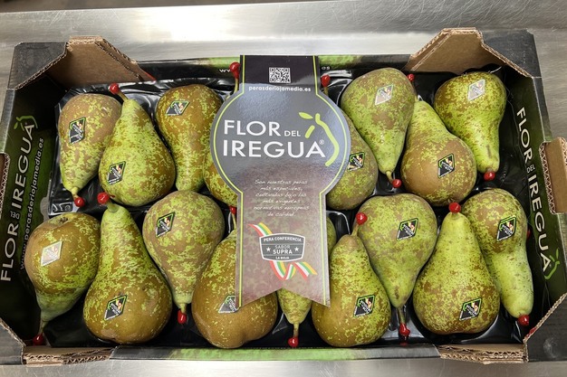 Peras Pipín specialiseert zich volledig in de Conference peer uit La Rioja. De premiumlijn heet Flor del Iregua, afkomstig uit een streek met een iets koeler en vochtiger klimaat, op hoger gelegen gronden langs de rivieren Iregua en Ebro. "Dat water zit vol mineralen en sedimenten die bijdragen aan de smaak", zegt Salvo.