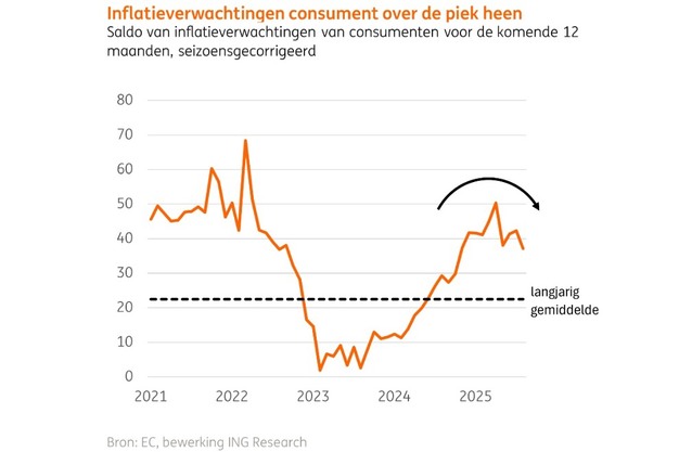 Volgens ING speelt inflatie een belangrijke rol in de houding van consumenten. Niet alleen de hoogte van de inflatie telt, maar ook welke producten duurder worden. Vooral stijgende prijzen van dagelijkse boodschappen en energie drukken zwaar op het consumentenvertrouwen. Bovendien zorgen inflatieverwachtingen ervoor dat huishoudens hun toekomstige koopkracht somberder inschatten, wat leidt tot extra voorzichtigheid en hogere spaarneigingen.