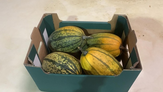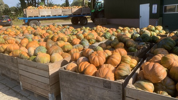 "Maar we hebben de beschikking over een goede oogst. De vruchtmaten zijn niet overdreven groot of klein. Wel was de regen aan het einde van de oogst erg welkom, want nu zijn ze mooi aan de maat. Er zitten genoeg pompoenen aan de plant. Wij zeggen dan: We hebben veel eters aan tafel", vertelt de teler. "Gelukkig merk je deze week ook dat de handel weer aantrekt. Herfstachtig weer met wind en regen is voor de pompoenenhandel altijd goed en dat zien we meteen terug in de vraag."