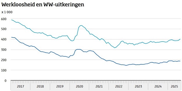 Uit kwartaalcijfers blijkt dat het aantal mensen dat korter dan een jaar werkloos is, de afgelopen jaren fors is gestegen. In het tweede kwartaal van 2025 ging het om 320 duizend personen, tegenover 249 duizend drie jaar eerder. Vooral de groep die één tot twaalf maanden naar werk zoekt, groeide sterk. Het aantal langdurig werklozen (langer dan een jaar) bleef juist stabiel.