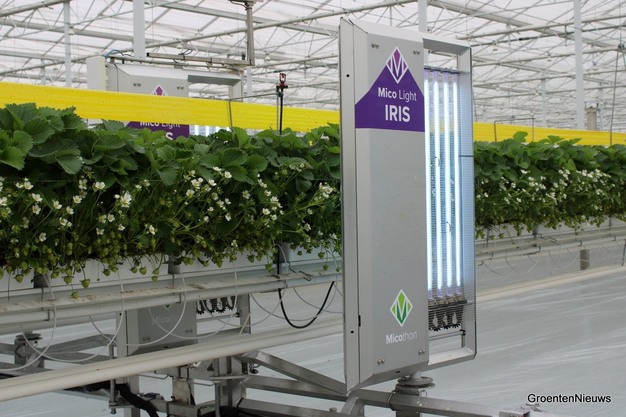 Een van de hoogtepunten voor de bezoekers aan Gestelberries was een demonstratie van de UV-C-robot van Micothon. Die doet sinds enige tijd 's nachts zijn werk in de kassen, en helpt meeldauw voorkomen.