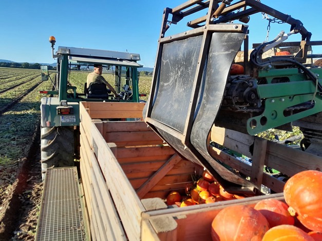 Tholen - De Terp heeft de laatste pompoenenoogst in Altrich / Rijnland-Palts afgerond en daarmee het oogstseizoen van vijf weken afgesloten. "In totaal hebben we 6.000 ton pompoenen geoogst in Nederland en Duitsland", vertelt Rinke Robbers.