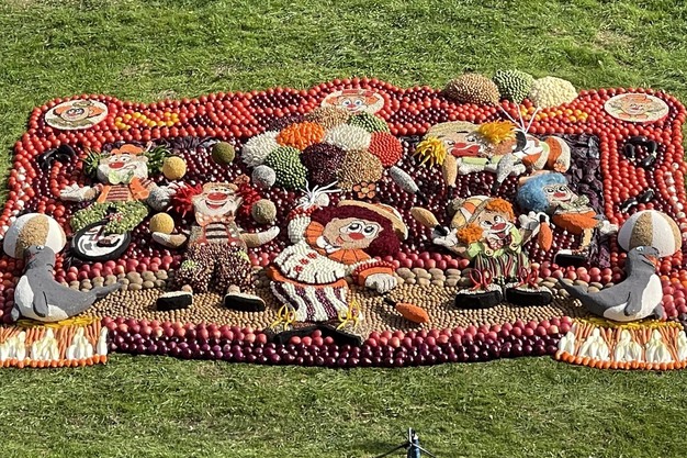 In totaal waren er zeventien mozaïeken van groenten en fruit te bewonderen langs de Tielse gracht. De fruitmozaïeken vormen de traditionele proloog van het Fruitcorso, dat dit jaar plaatsvindt op zaterdag 27 september aan de Waal en om 13.30 uur begint.
