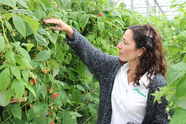 Toch was het vooral de eenvoudige pluk die overal het onderwerp was van gesprek. Elisa Pérez, breeding manager bij Planasa, legt uit waar dat hem nu precies in zit. "We hebben geselecteerd op drie specifieke eigenschappen die het plukgemak vergroten. Ten eerste de structuur van de plant: de frambozen hangen in het zicht en zitten niet verstopt achter hangende takken of bladeren. Ten tweede het formaat: de frambozen zijn relatief groot, wat ook het plukgemak vergroot. Ten derde, en misschien is dat nog wel de belangrijkste factor, de hechting van de framboos aan de plant. Die is minder sterk dan bij andere variëteiten, waardoor de vrucht makkelijker loskomt tijdens het plukken."