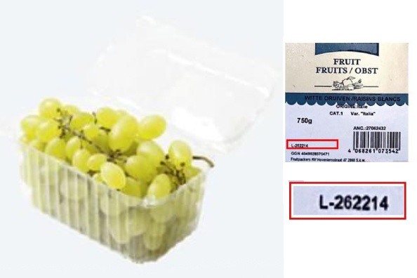 Het gaat om witte druiven met pit in een plastic bakje van 750 gram met het lotnummer L-262214. De verpakkingen van Fruitpackers hebben ook de codes EAN: 27062432 en GTIN: 4068261073542. De druiven werden tussen 14 en 23 september 2025 verkocht in de Belgische Aldi-winkels.